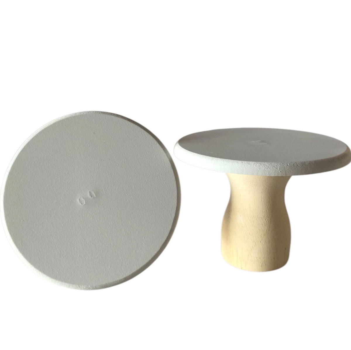 Base HUESO/NUDE alzada pie de torta de madera estilo nórdica 10cm de alto x 15cm de diámetro