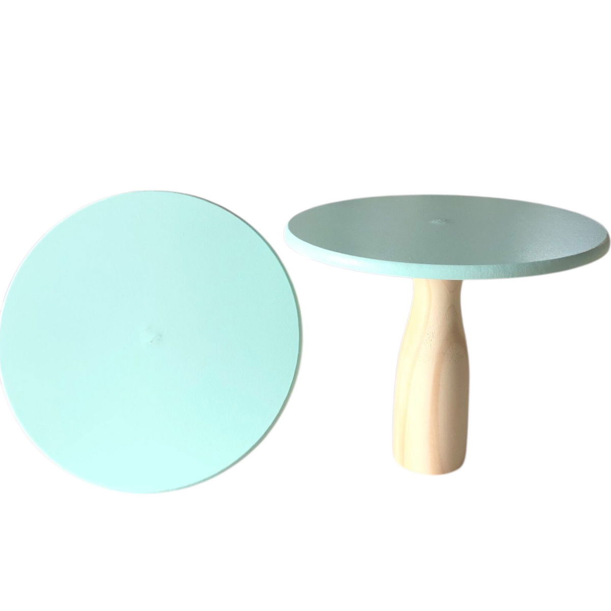 Base VERDE PASTEL alzada pie de torta de madera estilo nórdica 20cm de alto x 25cm de diámetro