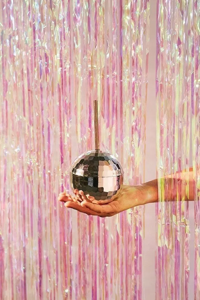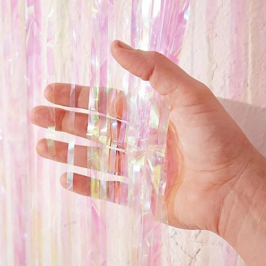 Cortina de flecos iridiscente blanca 2mts x 1 mts aprox.