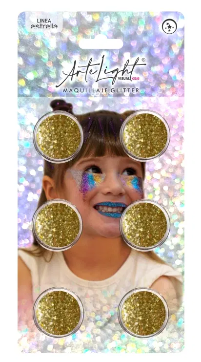 Set maquillaje x6 glitter dorado