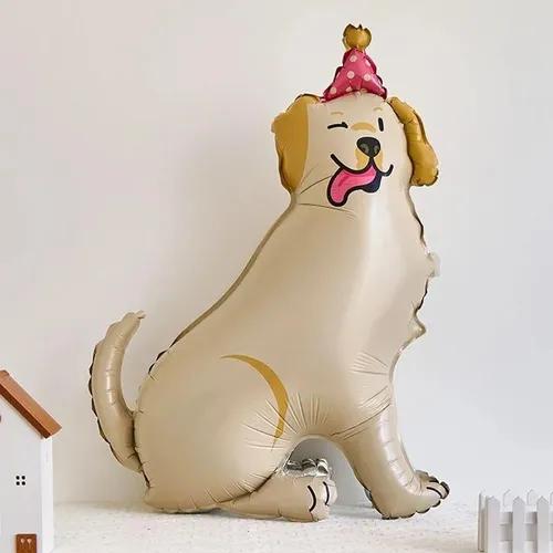 Globo perro labrador marrón con bonete rosa y lengua 90x 80cm