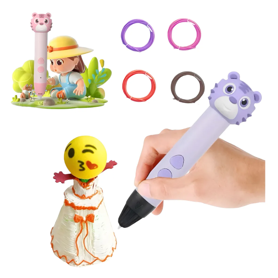 Lapiz 3D con filamentos incluidos TIGRE LILA (P11-HT)