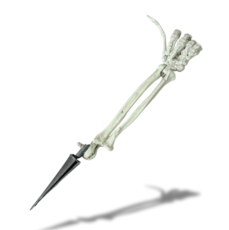 Brazo esqueleto de plástico articulado "OK" para clavar halloween