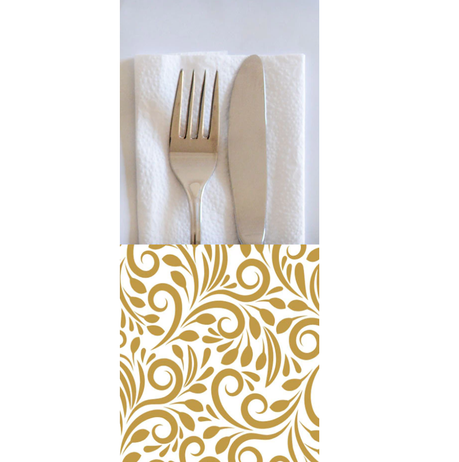 Porta cubiertos de papel x5 unidades arabescos dorados