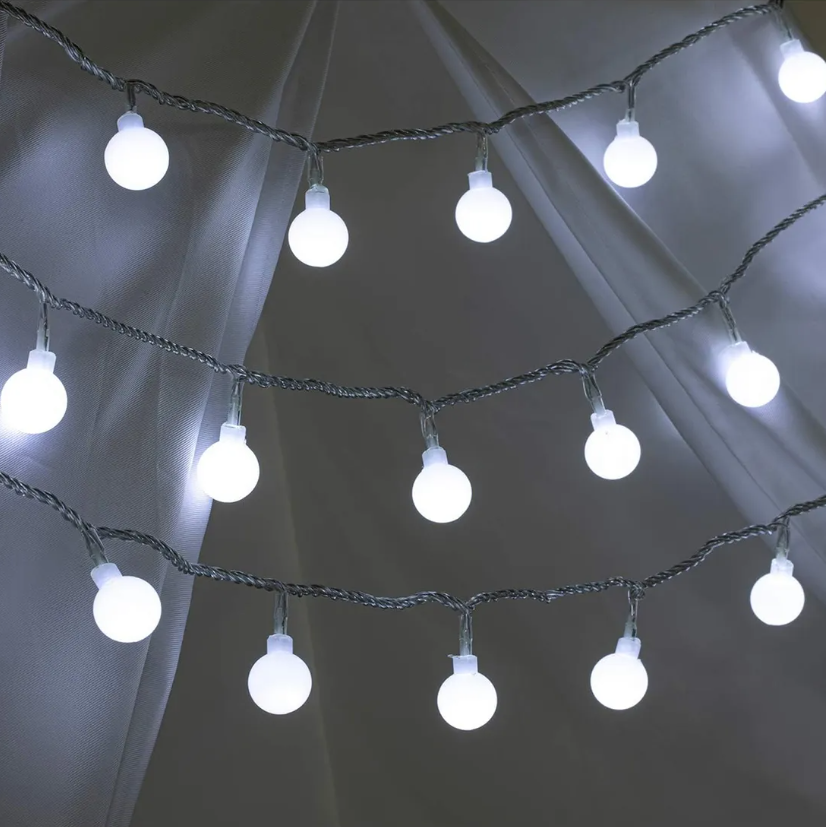 Guirnalda BOLITA BLANCA 9 mts. 100 LED a 220v BLANCO FRÍO