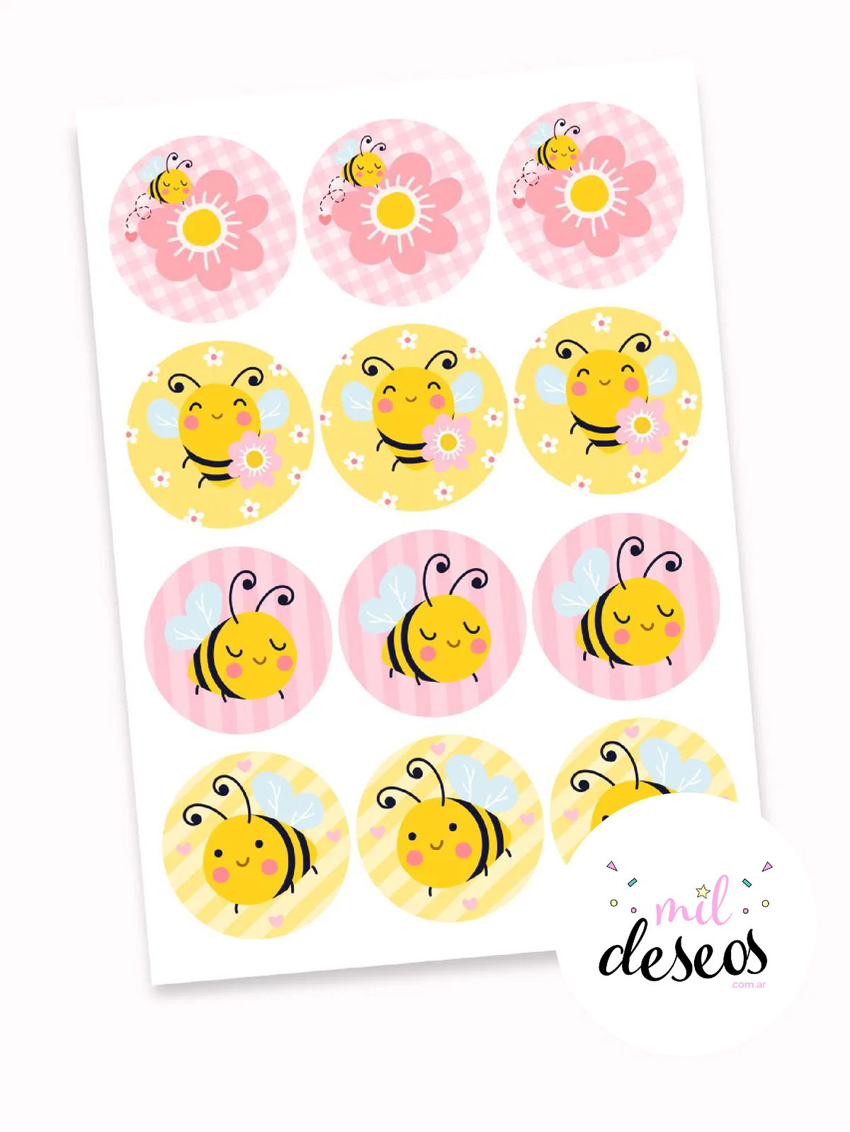Sticker abejita amarillo y rosa x12 unidades