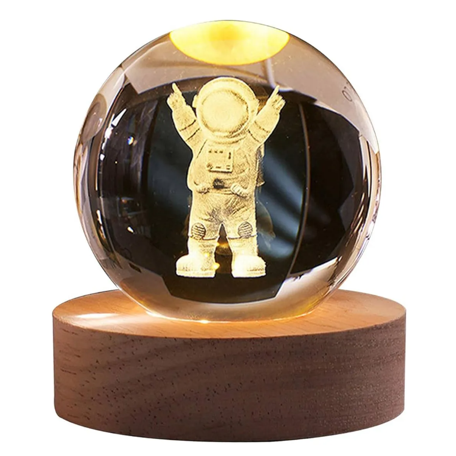 Bola cristal GRANDE LED ASTRONAUTA con base de madera (LED-83070)