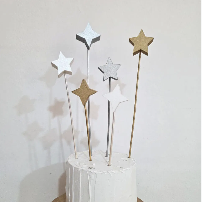 Kit topper de polifan PLATEADO, BLANCO Y DORADO estrellas navideña