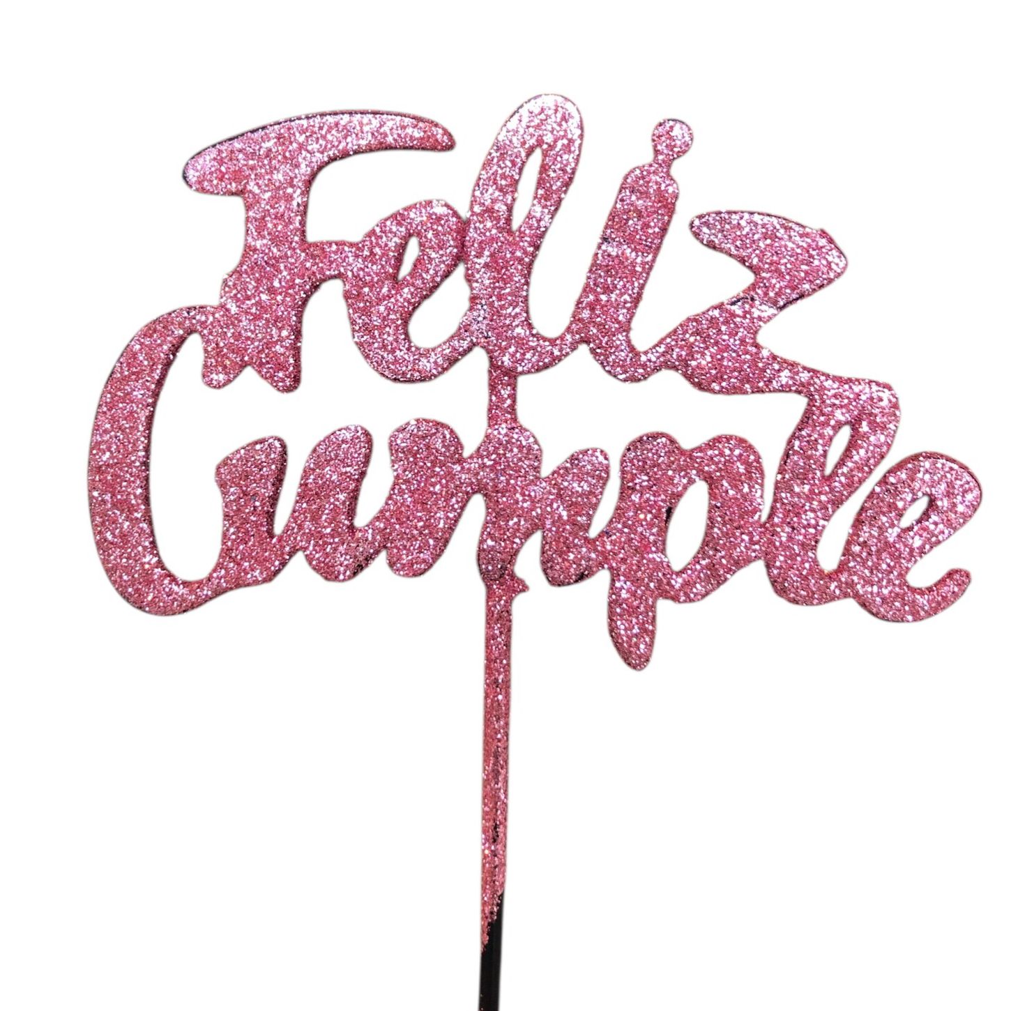 Topper feliz cumpleaños ROSA BEBÉ GIBRÉ de plástico
