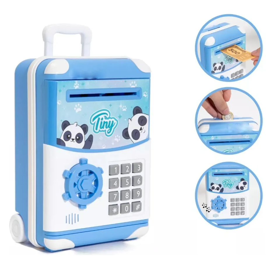 Alcancía caja fuerte valija infantil PANDA con contraseña, luz y sonido a pilas
