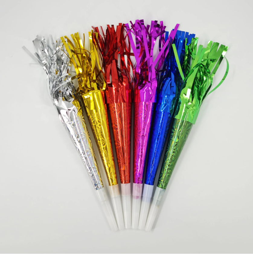 Cornetin de papel metalizado con flecos x6 unidades