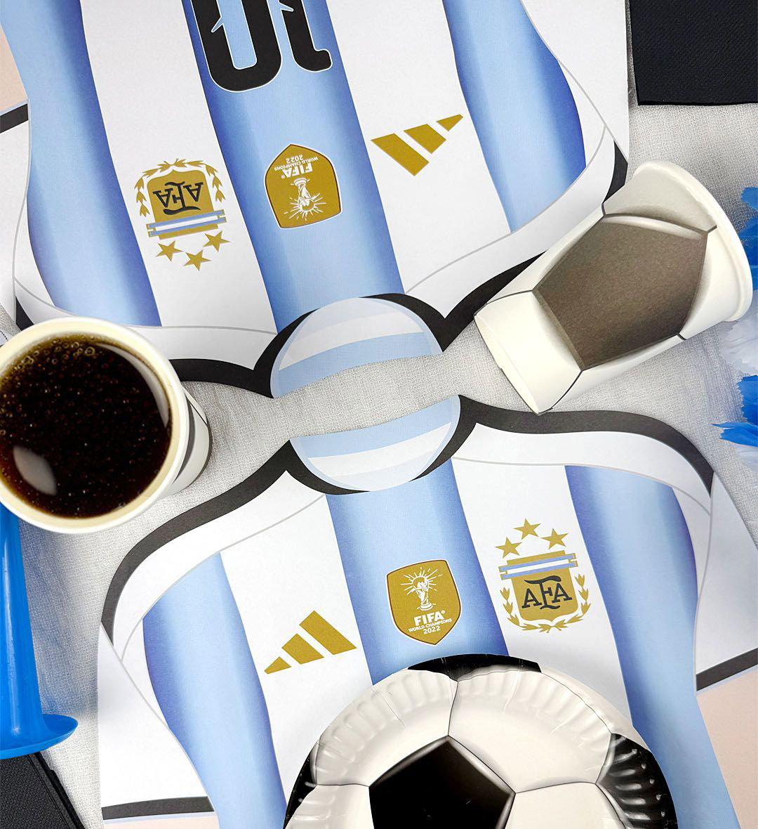 Plato de sitio de papel camiseta Argentina x5 unidades
