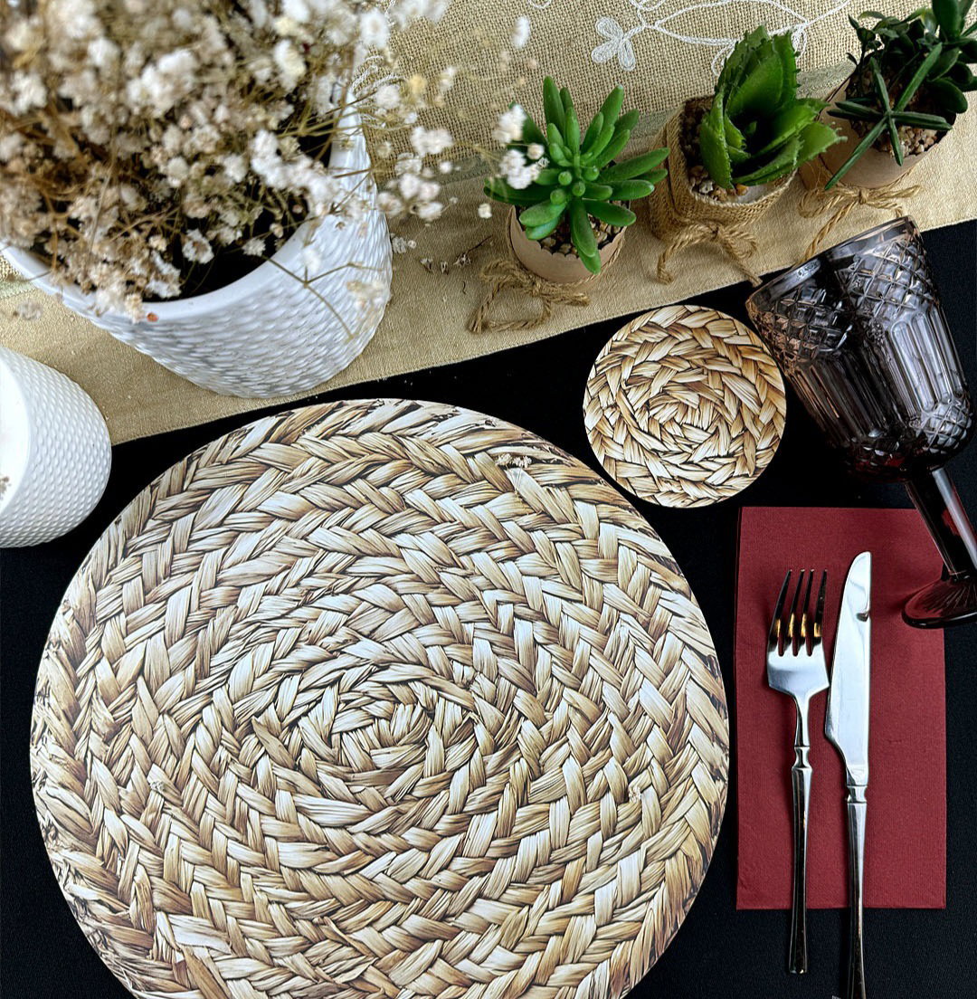 Plato de sitio de papel mimbre trenzado x24 unidades