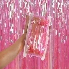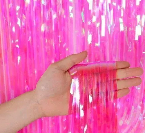 Cortina de flecos iridiscente ROSADA