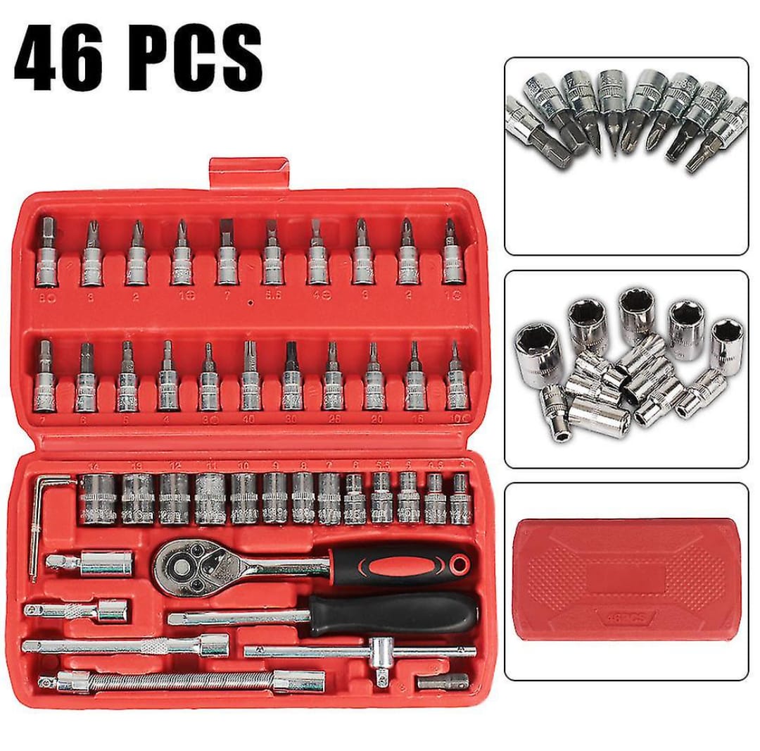 Set de llaves tubo x46 piezas en caja plástica ROJA