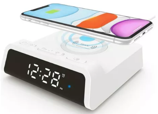 Reloj alarma digital con cargador base inalámbrica