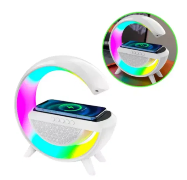 Parlante bluethooth con luz y base inalámbrica para cargar celular CHICO (G63)