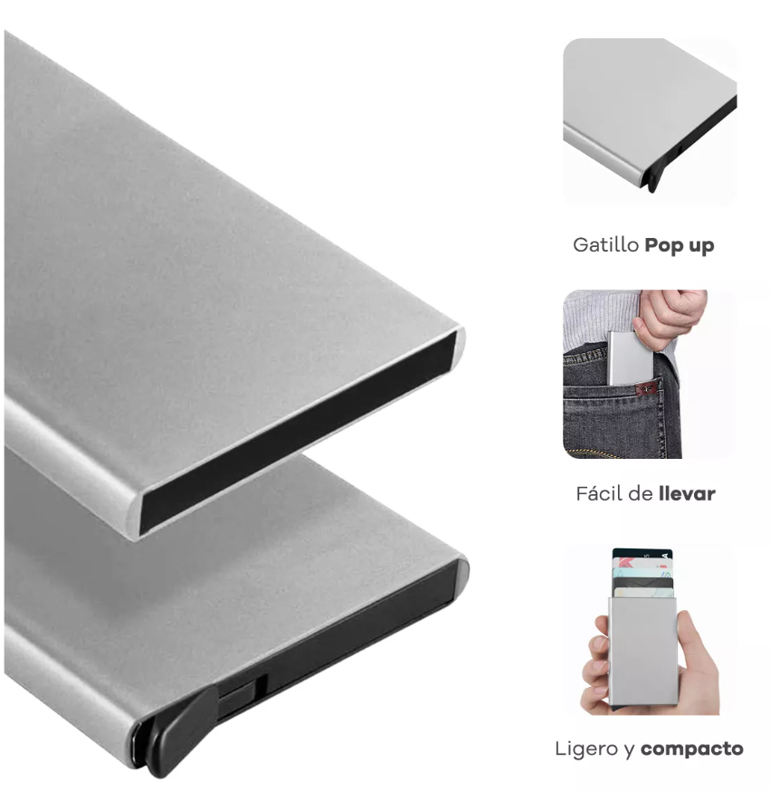 Tarjetero billetera de aluminio ANTIRROBO con protector de cuerina (4148)
