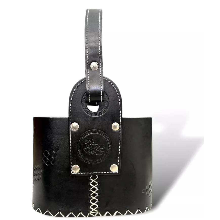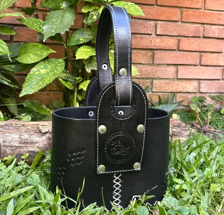 Matero canasta OVALADA de cuero negro PREMIUM con división (Caballo)