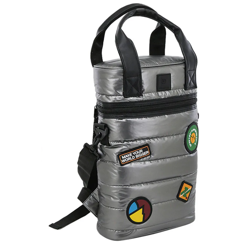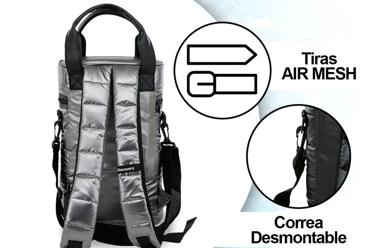 Bolso matero MOCHILA inflable DISCOVERY PLATEADO 1 cierre con parches (18463)