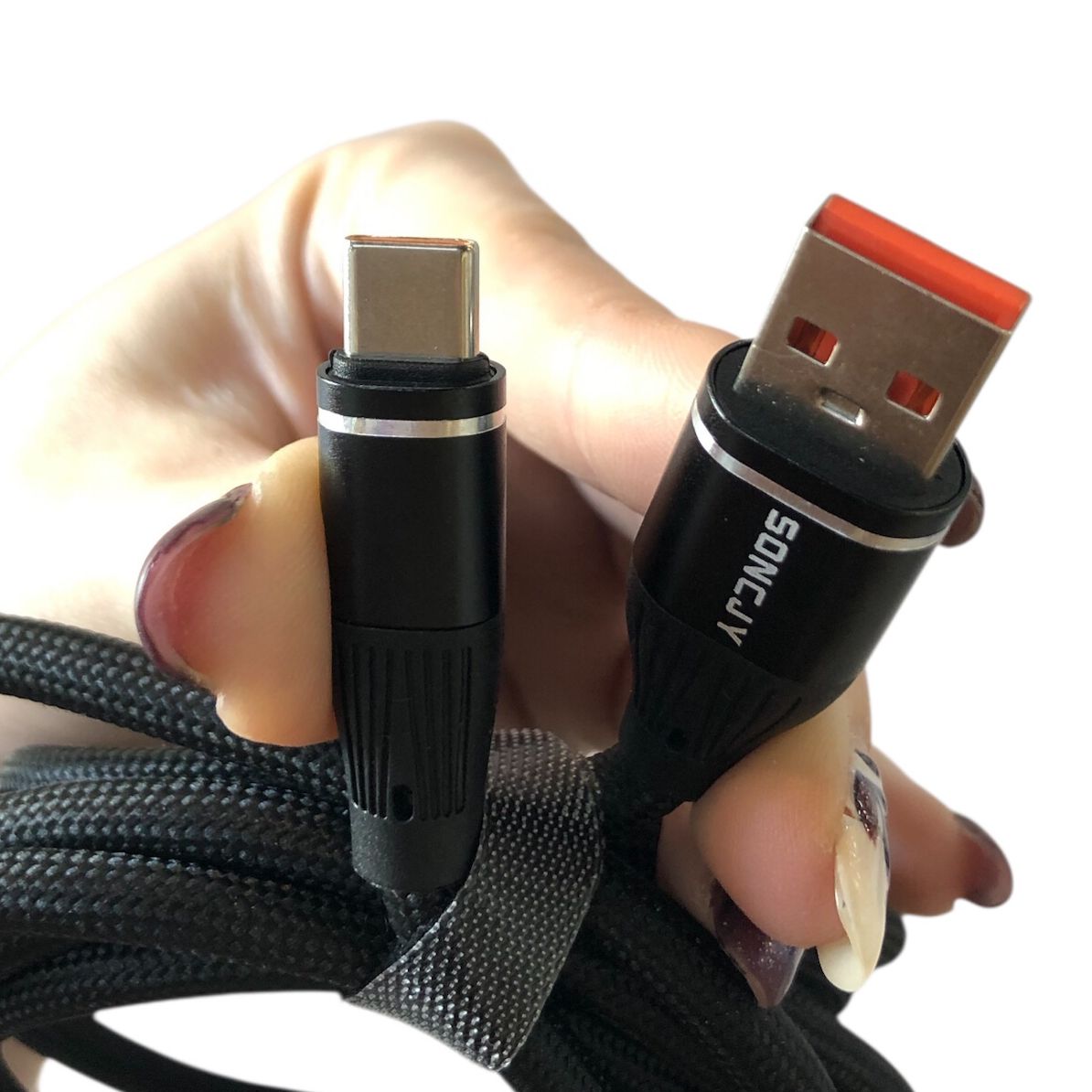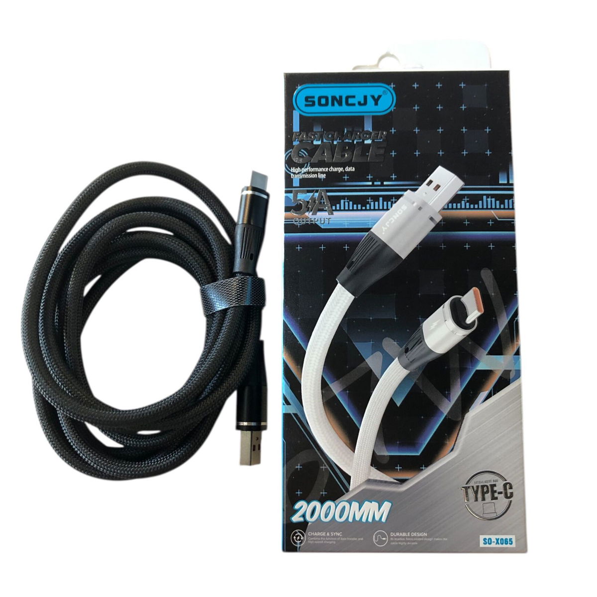 Cable USB a TIPO C SONCJY mallado 2mts 5A reforzado puntas de metal en caja (SO-X065)