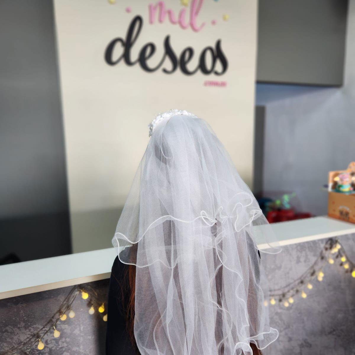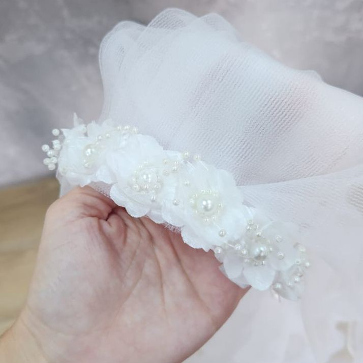Vincha flores blancas con velo x1 unidad