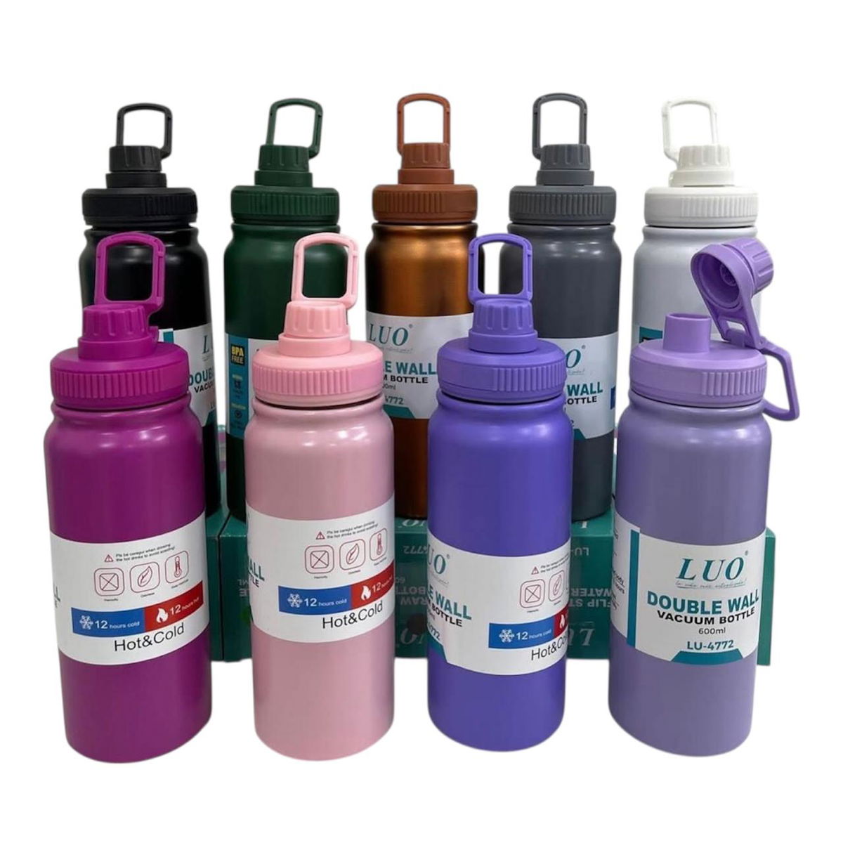 Botella térmica de acero inoxidable con tapa a rosca 600ml (LU-4772)