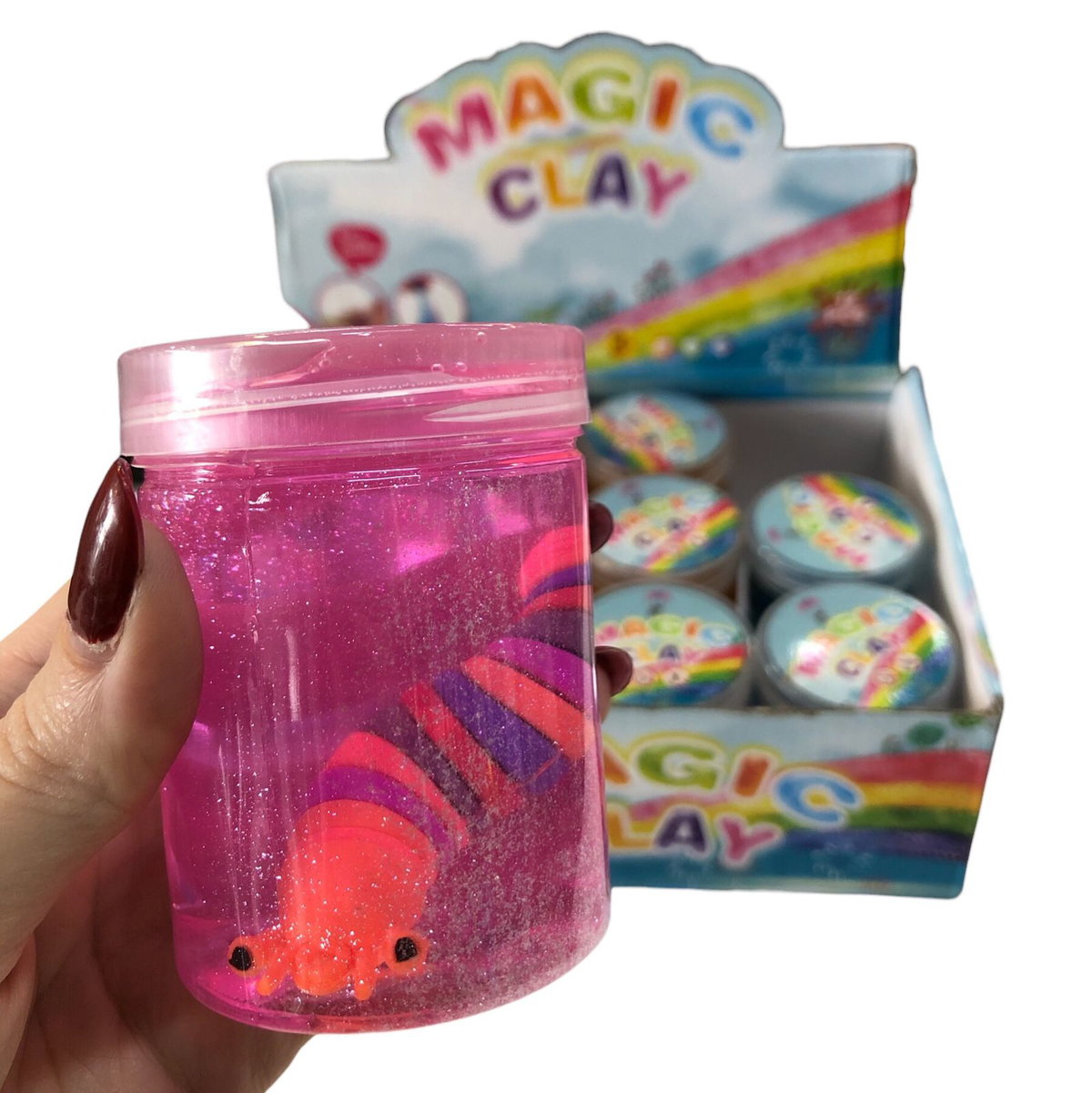 Slime con glitter GUSANO en pote 10x10cm surtido x1 unidad